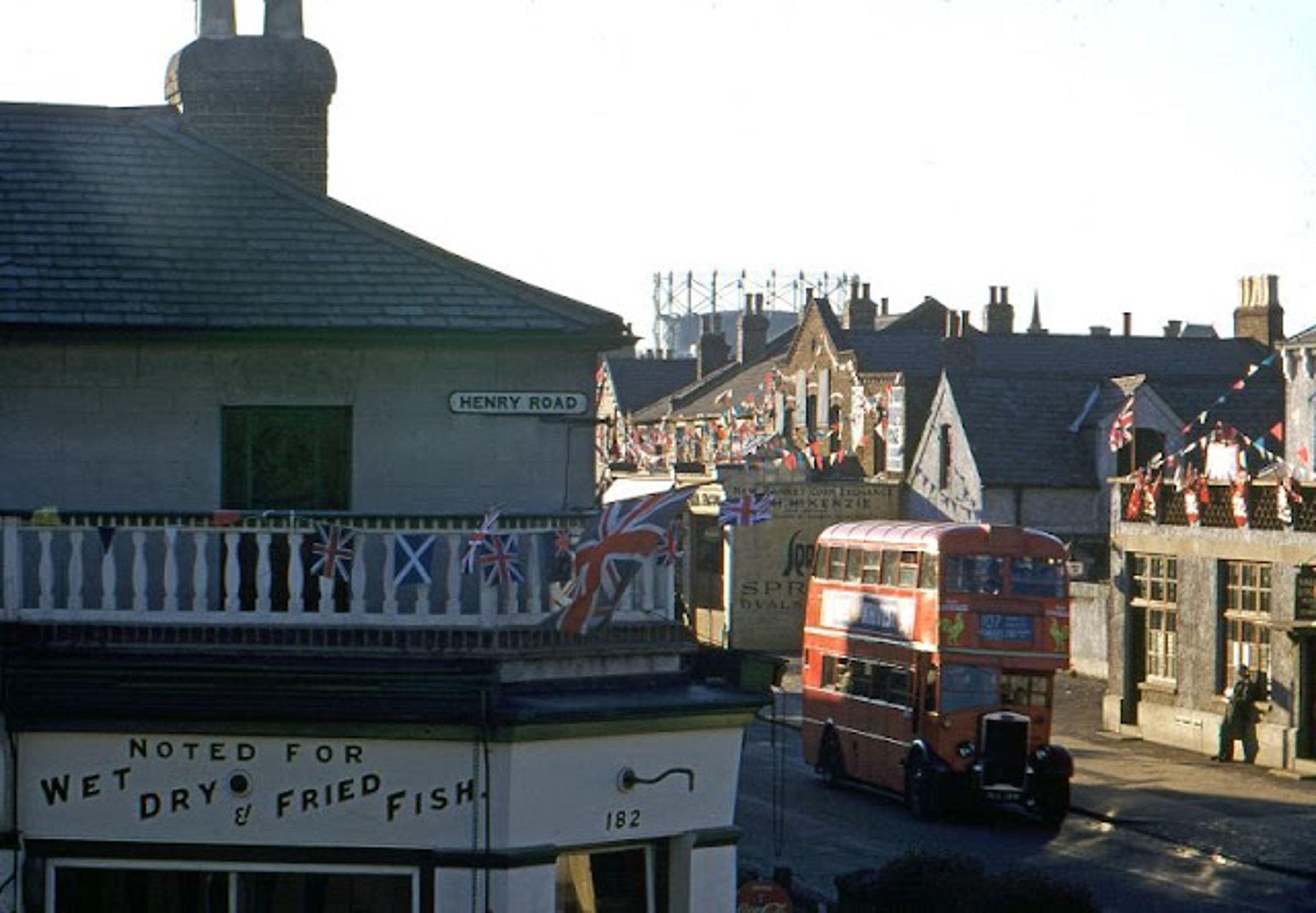 Атмосферу Лондона 1950-х определяли ритмичный шум красных даблдекеров RT-типа и вид джентльменов в котелках, совпавших с появлением субкультуры “Teddy Boy” в Южном Лондоне. [RT-type buses — это двухэтажные автобусы, которые стали знаковыми для Лондона в середине XX века. Они были разработаны совместно компанией Associated Equipment Company (AEC) и London Transport и стали символом города в 1950–1960-х годах. RT-тип — прямой предшественник автобуса Routemaster. Тедди-бои (Teddy Boys) — молодёжная субкультура, возникшая в Великобритании в начале 1950-х годов и несколько раз переживавшая возрождение в 1970-е и 1990-е годы. (Мне на память пришёл замечательный фильм «Заводной апельсин» Стэнли Кубрика)].
