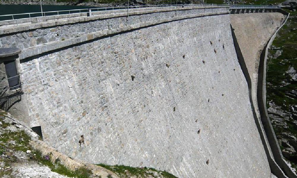 Видите точки на стене плотины?