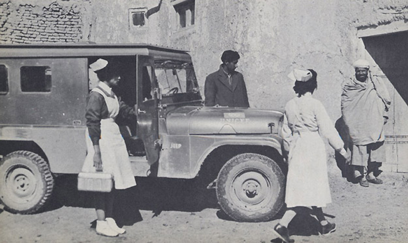 Когда-то центральное правительство Афганистана проводило различные программы развития сельской жизни, включая ту, что показана на этом фото: медсестер посылали на джипах в отдаленные деревни, чтобы лечить жителей от таких заболеваний, как холера. Сейчас только из-за проблем с безопасностью такое невозможно. На правительственных медработников часто нападают группы боевиков, которые хотят создать беспорядки и ужас в обществе