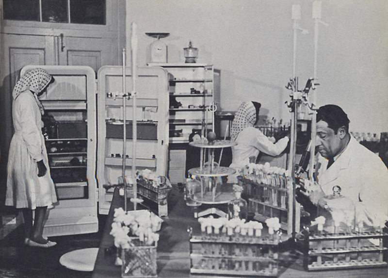 Исследовательский центр по производству вакцины в Кабуле в 1960-ых годах. Сегодня медицинские услуги ограничиваются несколькими факторами, включая отсутствие электричества. Менее 20% афганцев имеют доступ к электричеству, многие дома освещаются керосиновыми лампами, а с жарой борются слабые вентиляторы.