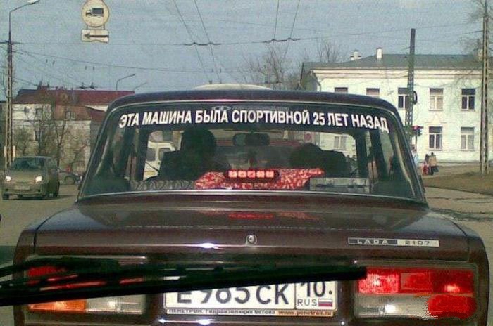 Забавные надписи на машинах. Попытаться подобрать серию (одинаковое название и разные цифры в конце) к этой публикации