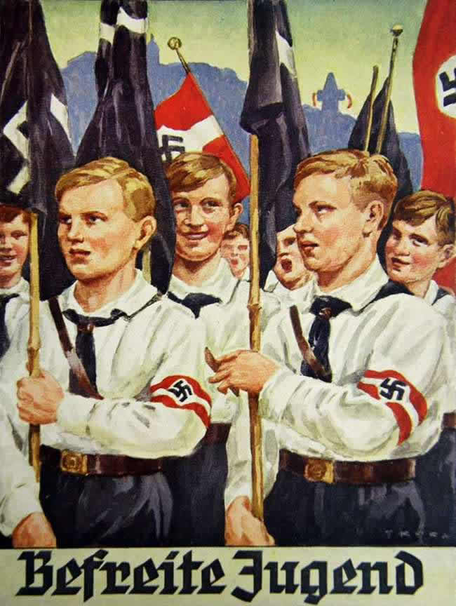 Гитлерюгенд - юношеская военизированная национал-социалистическая организация, которая была основана в 1926 году. Эта организация охватывала молодежь с 10 до 18 лет и делила ее на две возрастные категории - мальчики от 10 до 14 лет ("Дойчес юнгфольк") и юноши с 14 до 18 лет (собственно гитлерюгенд). В состав гитлерюгенда на автономных правах входил также Союз немецких девушек, который объединял всех германских девочек (но эту тему рассмотрим как-нибудь в следующий раз).