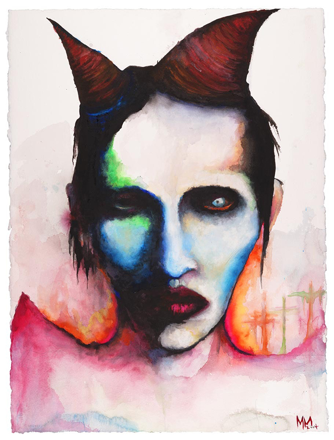 Впрочем, оставаясь верным себе и по-прежнему тяготея ко всему дьявольскому, в качестве тем для своих картин Мэрилин Мэнсон избрал, конечно же, смерть, насилие и увечья.