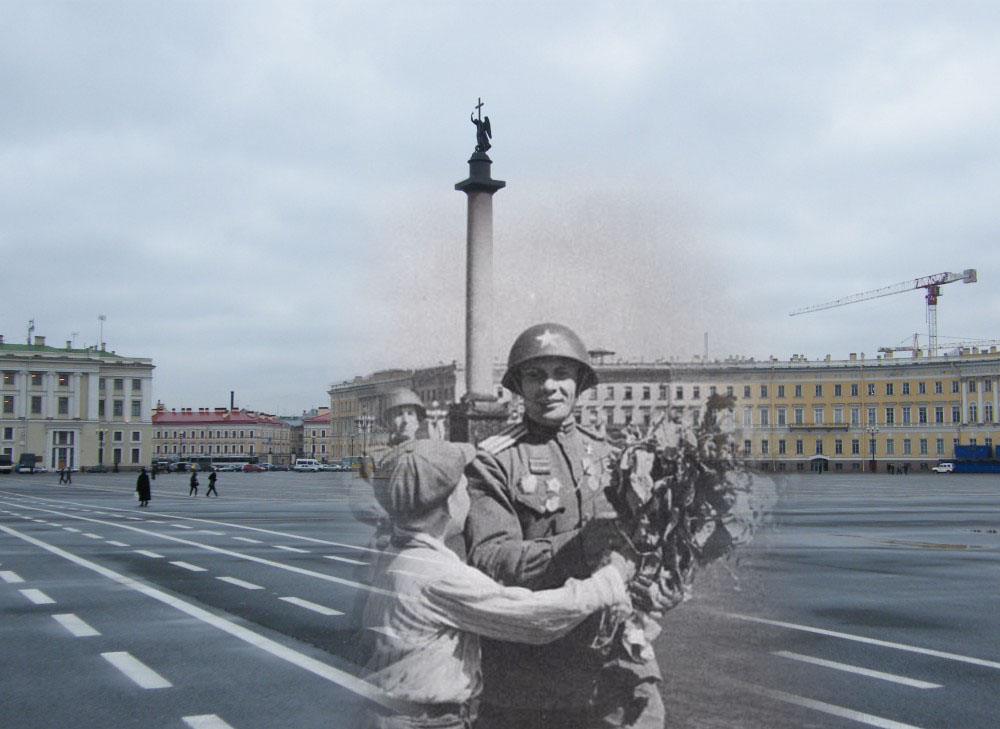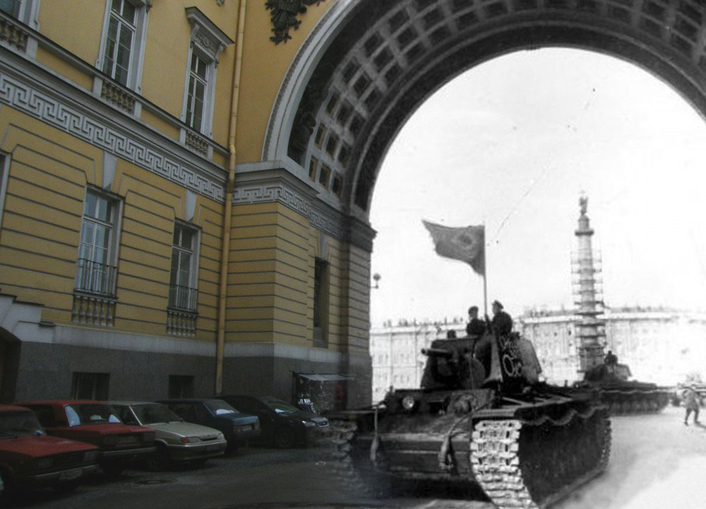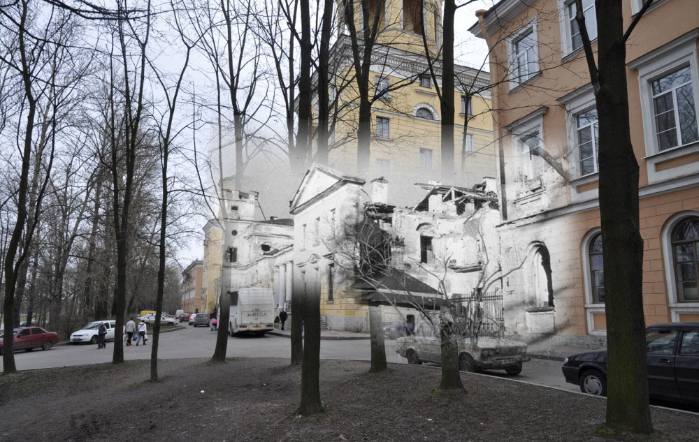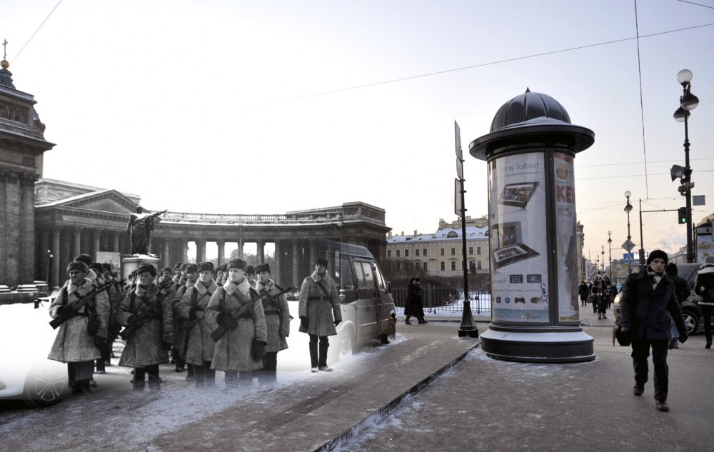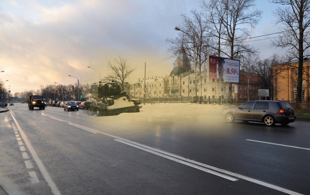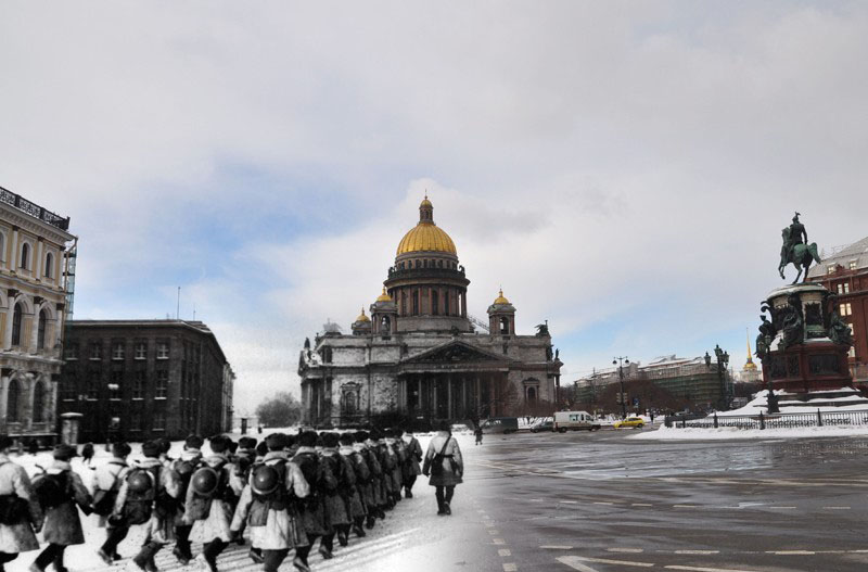 Продолжаю серию коллажей петербуржца Сергея Ларенкова, о блокаде Ленинграда. На каждом снимке максимально точно совмещены кадры одного и того же места, но сделанные в разное время: в годы блокады Ленинграда – и сейчас, в начале двадцать первого века.