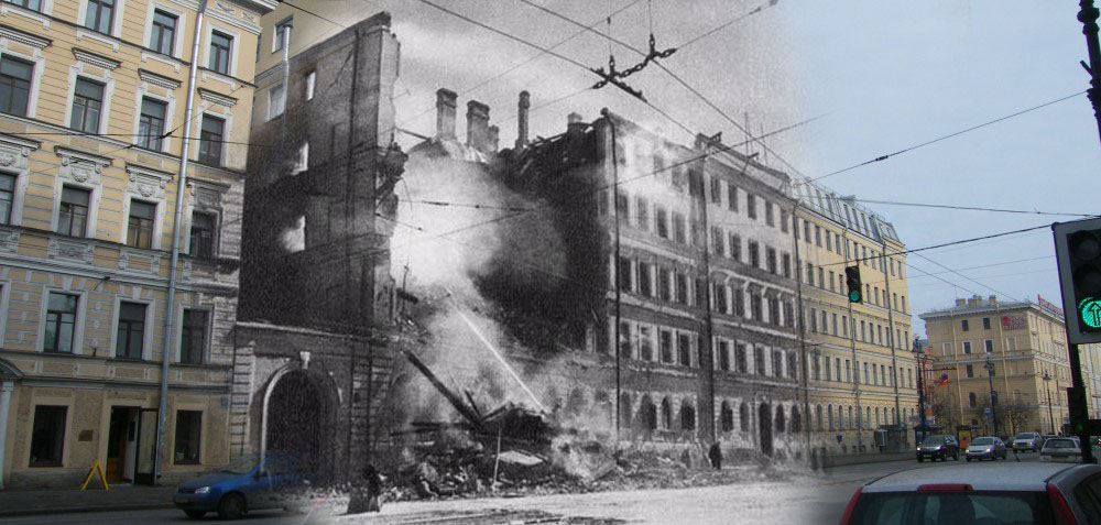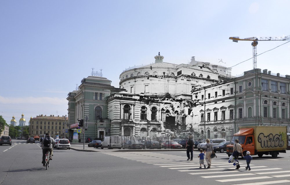 Ленинград 1941-Санкт-Петербург 2012. Кировский. Мариинский театр после попадания авиабомбы