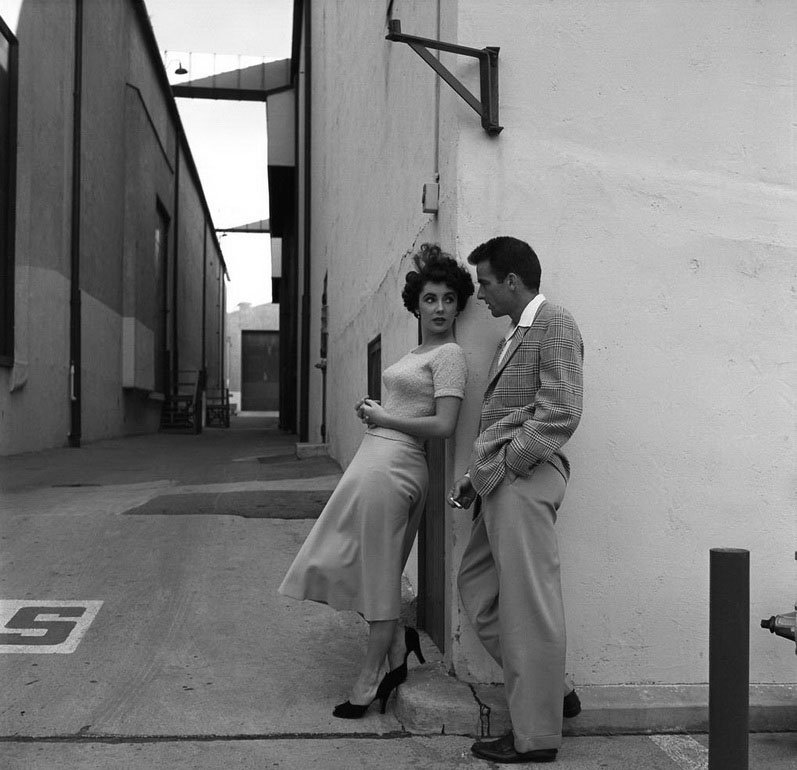 Элизабет Тейлор и Монтгомери Клифт во время перерыва на съемках фильма «A Place in the Sun» на студии Paramount