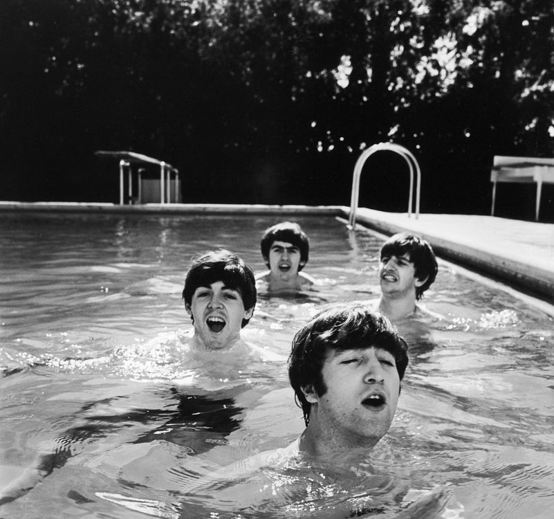 Битлз во время американских гастролей. Вода в бассейне была довольно холодной в тот день, о чем свидетельствует гримаса Ринго.