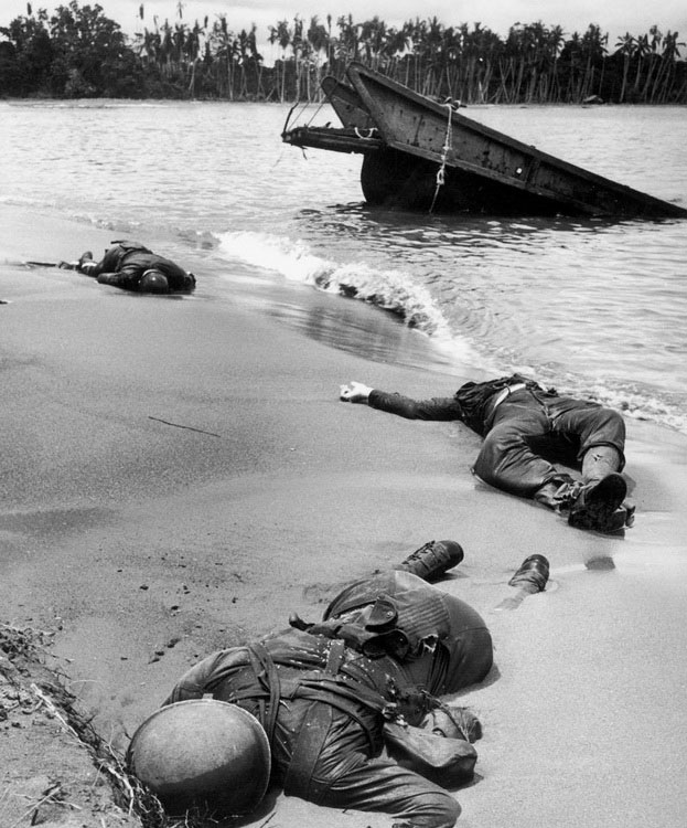 Американские солдаты, погибшие в результате боя с японцами на пляже в Новой Гвинее. Первый снимок с мертвыми американскими солдатами на поле боя в ходе Второй мировой.