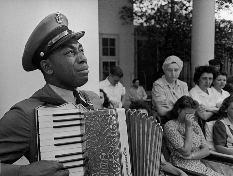 Старшина Грэм Джексон играет «Goin’ Home» на похоронах президента Рузвельта 12 апреля 1945 года
