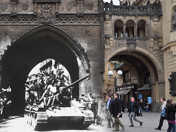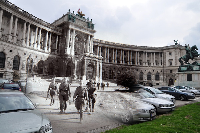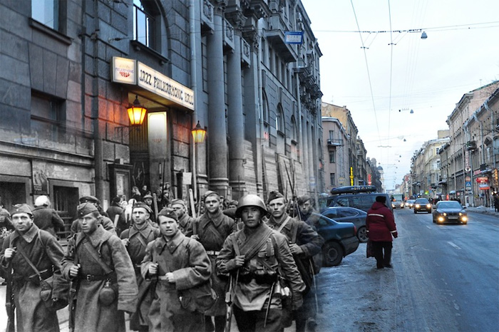 Бывший морской летчик, а ныне фотограф Сергей Ларенков создает потрясающие коллажи, совмещая фотографии городов времен Второй Мировой войны с их современными снимками, выполненными с тех же ракурсов. Большая часть работ Сергея посвящена блокаде Ленинграда, однако в его коллекции есть и фотографии Москвы, Берлина, Праги, Вены и Парижа.