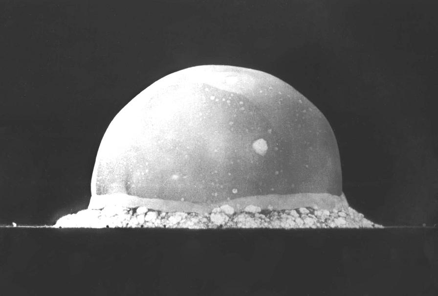 Взрыв «Штучки» через 0.016 секунды после детонации. Размер огненного шара — около 200 метров.