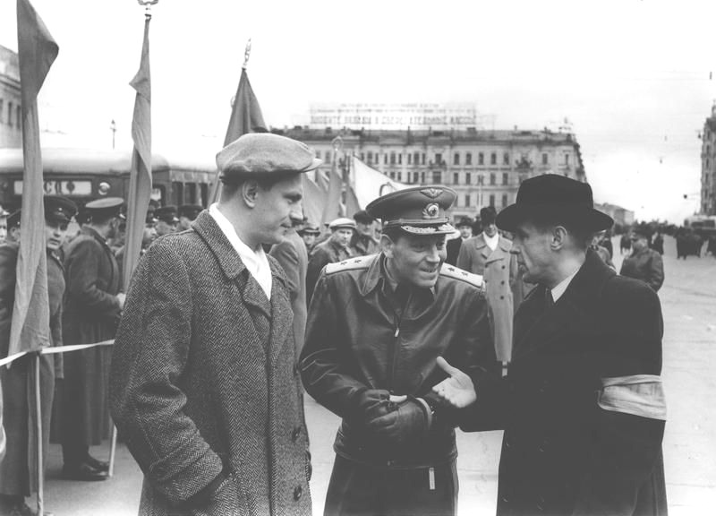 Генерал-лейтенант Василий Сталин и комментатор Вадим Синявский (справа); май 1951-го года