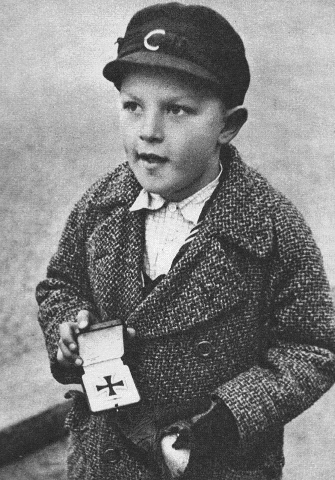 Немецкий мальчик меняет Железный крест на сигареты. 1 декабря 1945