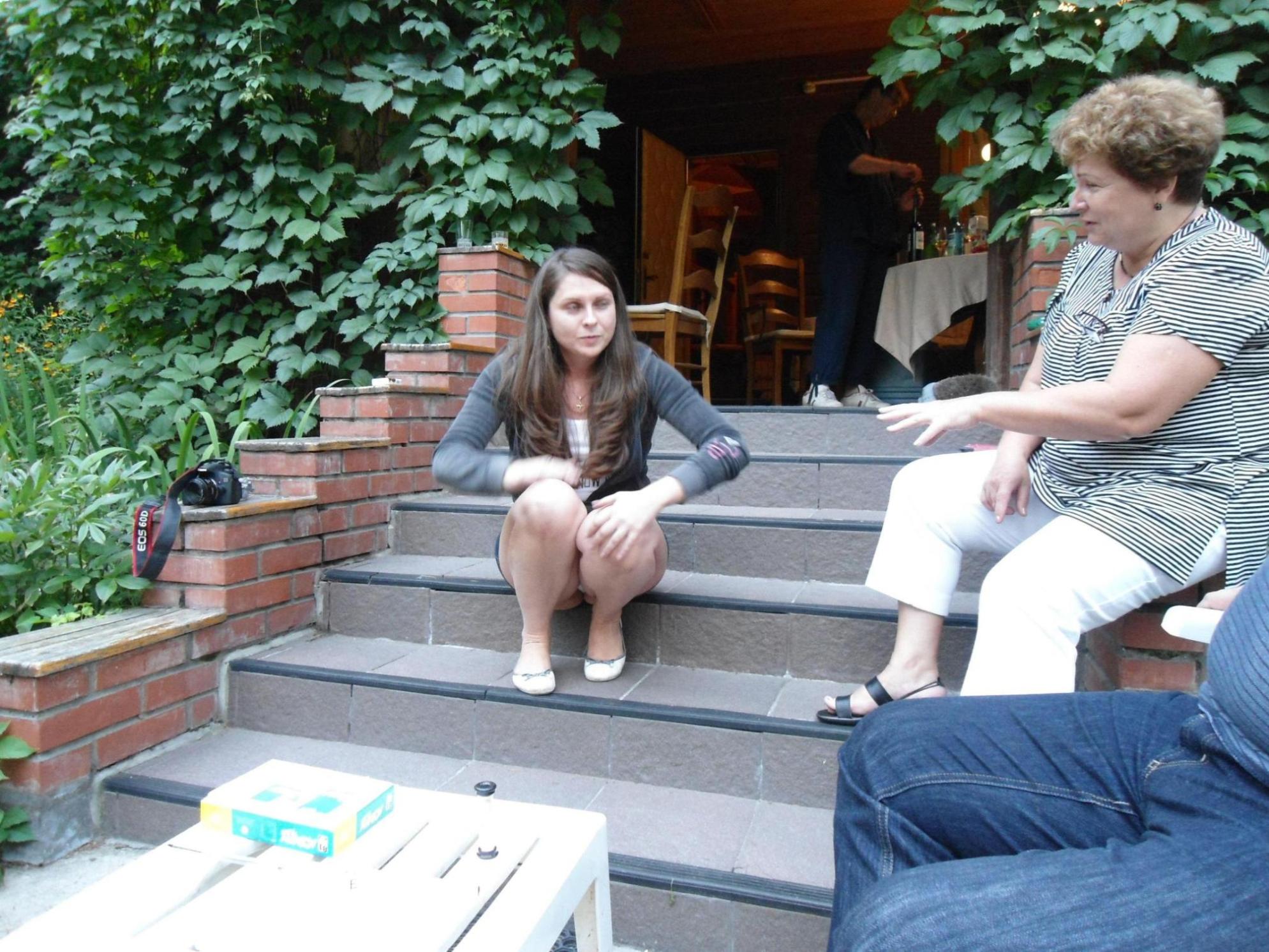 11-ю бы на стуле, 14-ю на этих ржавых перилах.....такой живописный вид позади них - хоть кино снимай