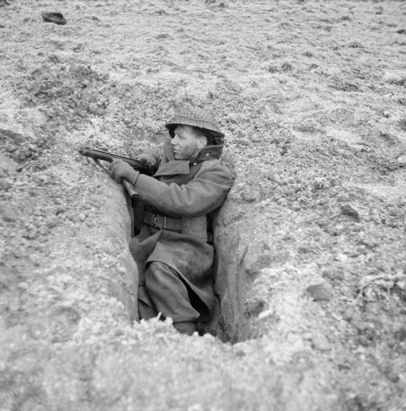 В начале войны (конец 1939 – начало 1940 г.) Британия испытывала жесточайшую нехватку оружия – поставки из-за рубежа прекратились, а своего оружия просто не было. Пехотные роты были вооружены, кроме обычного оружия, деревянными макетами винтовок, чтобы обмануть немецких шпионов. Особенно остро проблема нехватки стрелкового оружия встала в июне 1940 г., когда англо-французские войска были разгромлены немцами и в Англию вернулось 250 тыс. практически обезоруженных солдат.