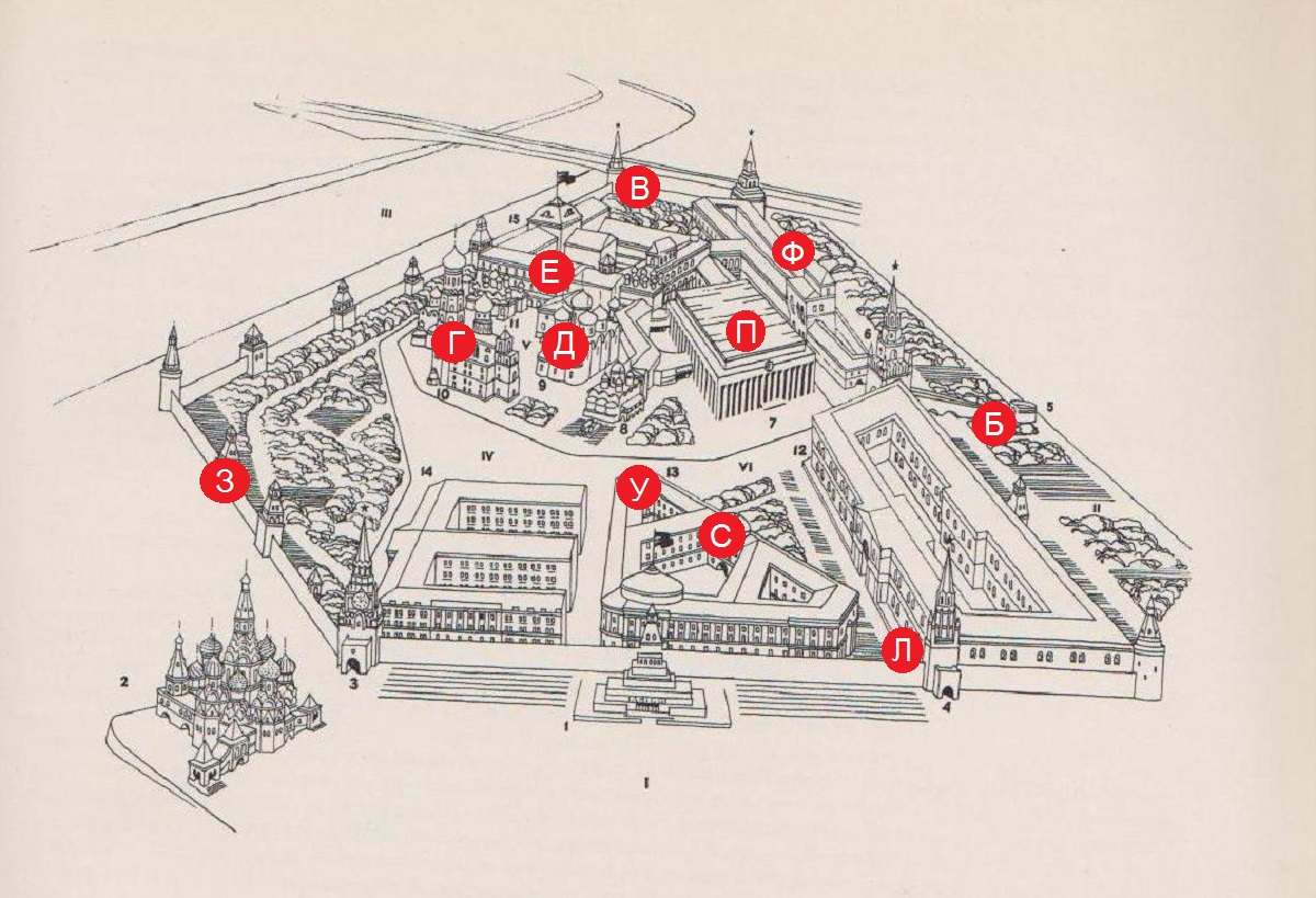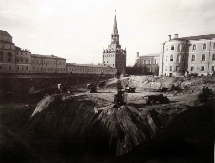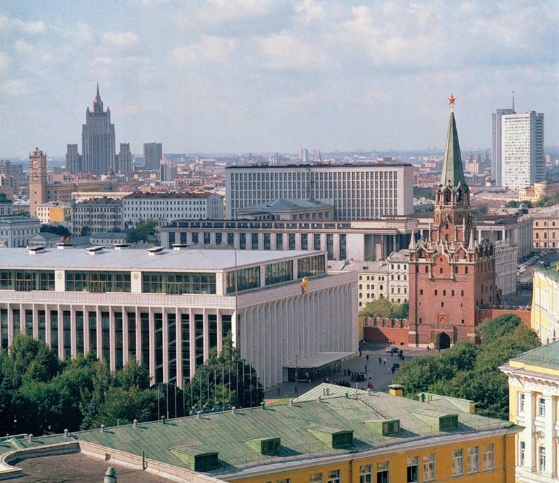 Рядом стояли монастыри: Чудов и Воскресенский, в котором был некрополь русских цариц и великих княгинь. В 1929 году монастыри взорвали и построили на их месте здание, в котором разместился секретариат Президиума Верховного Совета СССР (до 1991 г. Здесь проводились заседания палат ВС СССР).