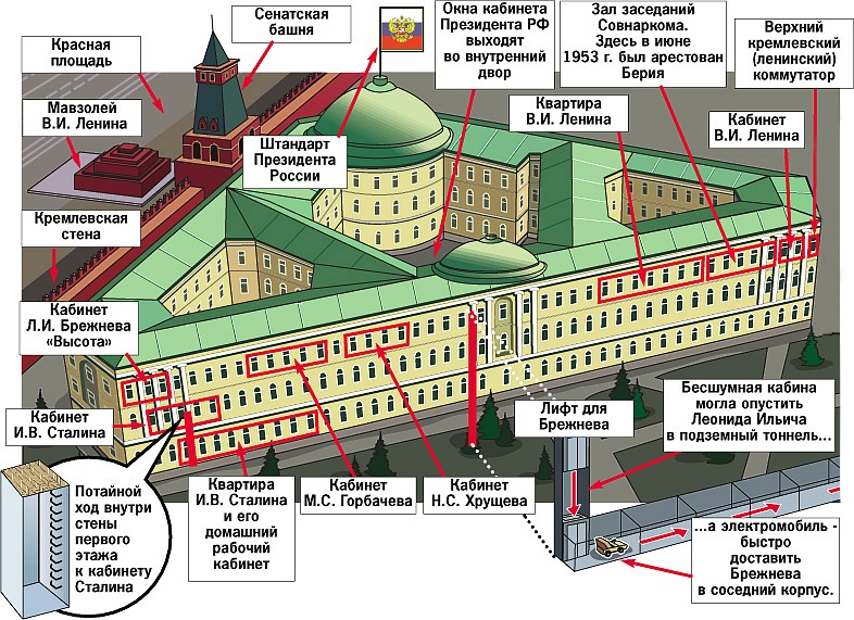 Одним из первых об этом заговорил, кстати, глава администрации президента Бориса Ельцина Сергей Филатов. В середине 90-х он проболтался журналистам, что боится по ночам работать в своём кабинете, который в Кремле тогда находился аккурат под музеем-квартирой Ленина.
