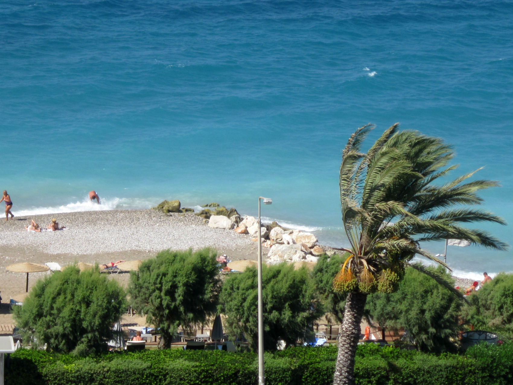 Был там 2 недели и постоянно был ветер с Эгейского моря. А на Средиземном все спокойно