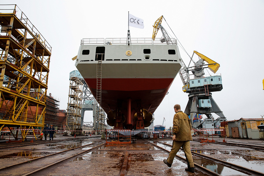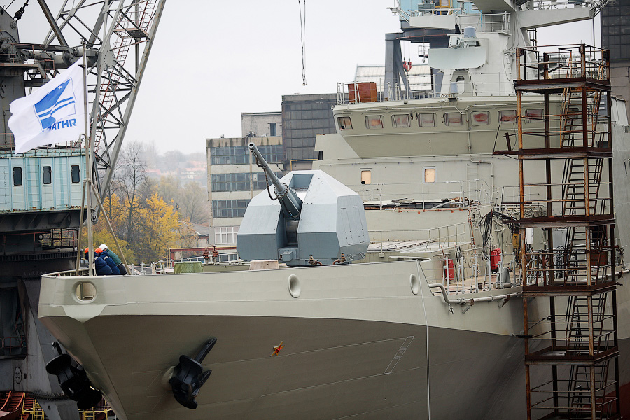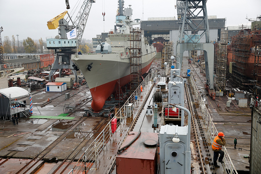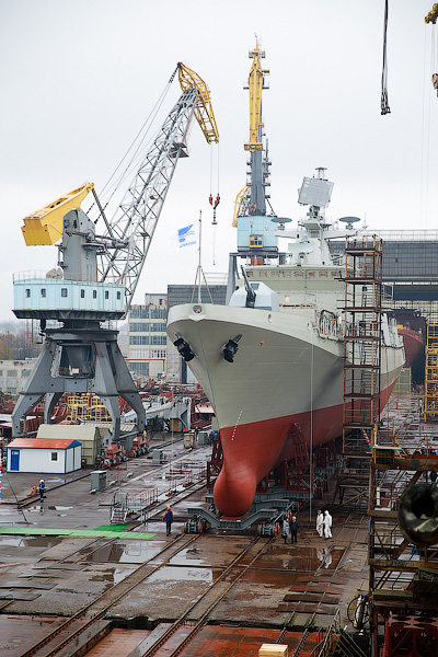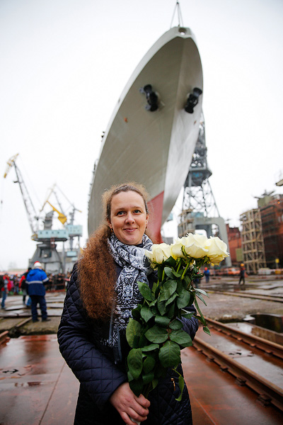 07.11.2014г. на Прибалтийском судостроительном заводе «Янтарь» прошла торжественная церемония спуска на воду нового фрегата проекта 11356Р/М для ВМФ России (второго в серии после фрегата «Адмирал Григорович»).