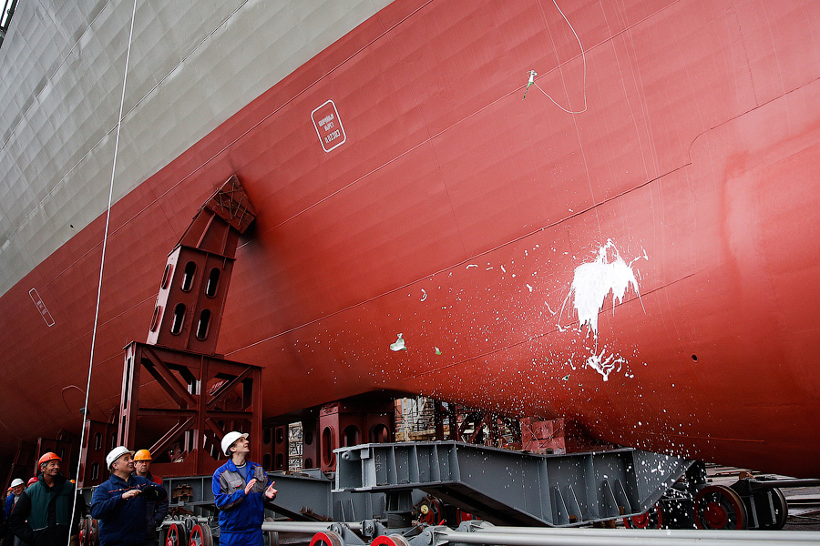 На церемонии открытия присутствовали потомки адмирала Эссена, а бутылку шампанского о борт корабля разбила внучатая племянница прославленного флотоводца Майя Эссен.