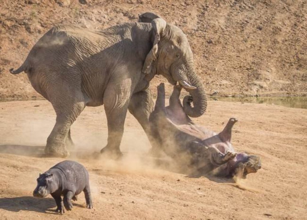 Интересно - что не поделили слон с бегемотами?