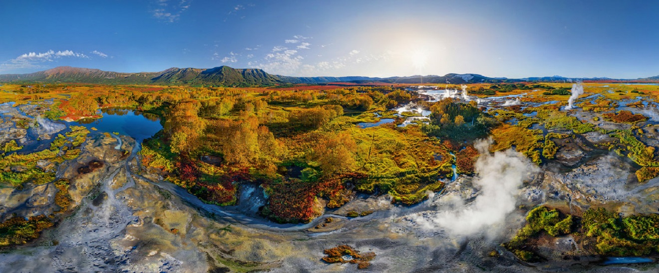 Кальдера — это котловина, впадина диаметром 10 км на месте уже не существующего древнего вулкана. Кальдера вулкана Узон, или сопка Узон, — это памятник природному катаклизму, происходившему здесь сорок тысяч лет назад. Точнее, последнее извержение произошло около восьми с половиной тысяч лет назад. Его след — километровая воронка озера Дальнее. Гористые хребты, окружающие кальдеру, — стенки бывшего кратера. Высочайшая вершина — пик Бараний (1617 м). Общая площадь кальдеры вулкана Узон — около 150 квадратных километров. Восточная часть холмистая, западная заболочена. На Узоне есть все, чем знаменита Камчатка: горячие источники и холодные реки, ядовитые грязевые котлы, гейзеры и фумаролы, ягодная тундра и березовый лес, даже выходы нарзана. Уникальный минералогический состав — породы меняются под воздействием температур и вулканических процессов, и их слои видны, как на срезе. Здесь найдены гидротермальные минералы, которые не встречаются больше нигде. Для ученых Узон важен тем, что его экосистема позволяет исследовать геологические процессы в естественной среде, в развитии. В кальдере сотни мелких озер и множество заболоченных участков. Под воздействием подводных фумарол поверхность этих озер пузырится и бурлит. Самые крупные из озер — незамерзающее Фумарольное и холодное Центральное. Озеро Банное с выходами радона и резервуаром расплавленной серы под «ложным дном», то есть под коркой застывшей серы, прогревается до +40 °С даже зимой. На территории Кроноцкого государственного заповедника климат морской, лето короткое, прохладное и дождливое, зима мягкая и многоснежная, часты сильные ветры и штормы. С 1996 года Узон включен ЮНЕСКО в Список Всемирного природного наследия в номинации «Вулканы Камчатки».