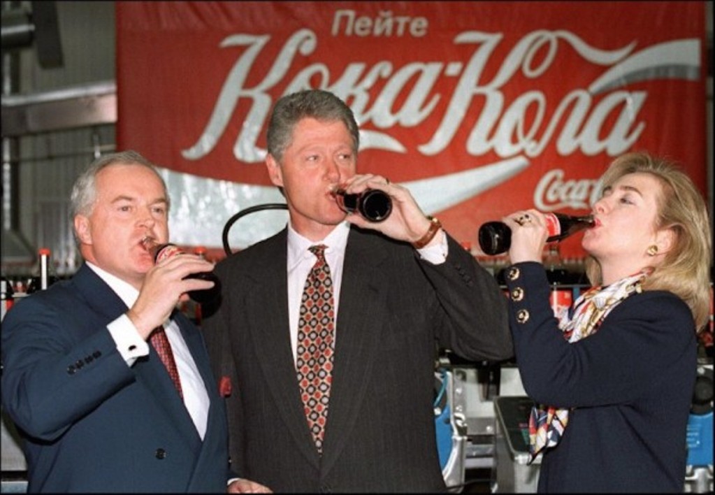 11 мая 1995 года Москва Чета Клинтонов глушит Кока-колу в Москве