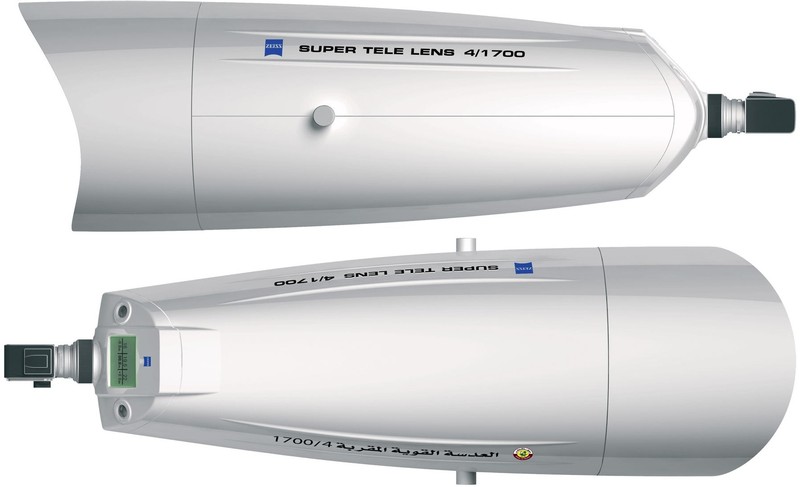 4. Супертелеобъектив: Carl Zeiss Apo Sonnar T* 1700 мм F/4 Компания Carl Zeiss показала этот объектив в 2006 году на выставке Photokina в Германии. Carl Zeiss Apo Sonnar T* 1700 мм F/4 разработан специально для анонимного любителя «фотоохоты» из государства Катар. Цена осталась тайной. Известно лишь, что объектив состоит из 15 элементов в 13 группах и предназначен для систем среднего формата.
