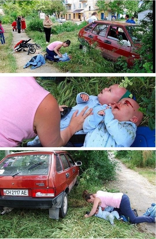 Извините что не по региону, но не смог пройти мимо- "ДТП 30.05.2015 в Севастополе: пьяный водитель переехал коляску с близнецами" ДТП 30.05.2015 в Севастополе: пьяный водитель переехал коляску с близнецами.Мать двух годовалых близнецов вытаскивала своих окровавленных детей из-под автомобиля. Как они оказались там? В результате ДТП.Предоставим слово очевидцу событий. Именно он помогал молодой маме высвободить детей:«30 мая около 16 часов 10 минут на улице Лобанова коляска в двумя грудными детьми, которая стояла на пешеходной дорожке в значительном отдалении от проезжей части, была буквально разорвана на части легковым автомобилем – ВАЗ-2109, который внезапно выскочил на газон. Мать не пострадала, если не брать в расчет её психологическую травму»«Ещё бы полметра, и одного ребёнка просто переехало бы, — рассказал Вадим, очевидец ДТП. — Мамочка была просто в шоке: то кричала, то звала «Скорую», то тихо молилась над окровавленными детьми. Первым через 5-7 минут приехал майор ГИБДД, чуть позже — «Скорая. Ехала минут 20». Детей увезли в больничку. По неподтвержденным данным вроде обошлось, живы…» На снимках видна разорванная в клочья коляска, рыдающая от горя мать, склонившаяся над лежащими прямо на голой траве плачущими малышами. У одного из них рассечена бровь…Отдельный рассказ Вадим посвящает главному «герою» и просит опубликовать его фотографию. «Водитель той самой красной «девятки» — пьяный. Как сказали полицейские — норма промилле превышала допустимую в 10 раз. Прав при нем не было, сказал что потерял, но документы на машину были… Как вылетел на газон – пусть разбираются в полиции. Он говорит, что уходил от лобового столкновения, когда какая-то машина выскочила ему навстречу, — продолжает свой рассказ Вадим. – Со слов очевидцев, его на этой «девятке» видели уже три дня подряд пьяным «в хлам»: то развернуться не мог, то гонял как сумасшедший… В этот день видели с друзьями, когда они сидели в его машине и пили пиво…»Но самое вопиющее — со слов Вадима – что водителя «вроде как уже выпустили. Говорят, что он не местный. Сдаётся, что «свалит» из города…». Очевидец ДТП возмущен вместе с его соседями по улице Лобанова. Люди просят опубликовать фотографию «героя» — выпивохи, который чуть не загубил невинные человеческие жизни.«Люди боятся, что он сбежит, а дело «похоронят»», — в заключение говорит Вадим корреспонденту «Информера». Это он является автором фотоснимков и просит опубликовать их с разрешения матери «близняшек». Она тоже возмущена, что их обидчик может избежать ответственности.