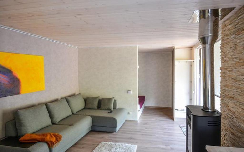 Отапливается жилище за счет камина на дровах. Его мощности хватит для обогрева в три раза большего по размеру помещения.