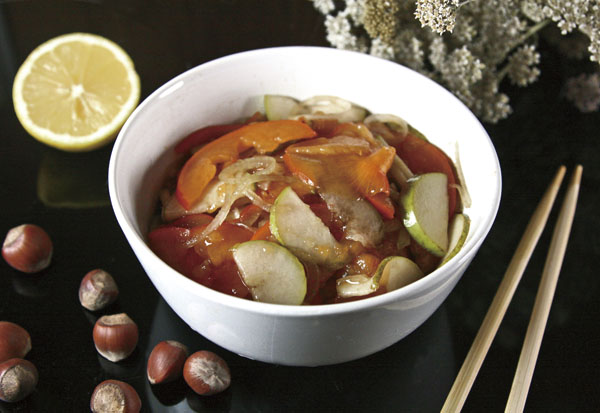 Салат с хурмой, грушей и луком