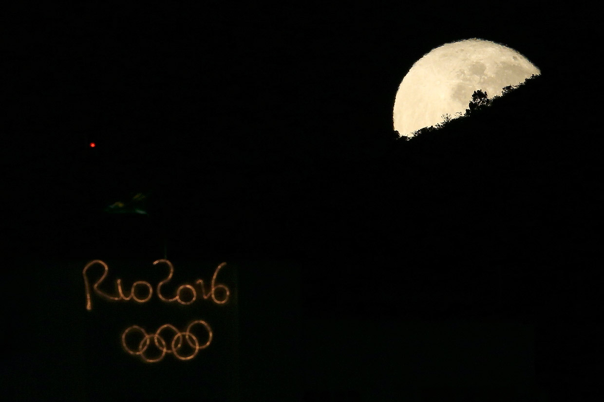 Полная Луна решила задержаться на олимпиаде и повисла над главным стадионом в Рио, 19 августа 2016. (Фото Paul Robinson).