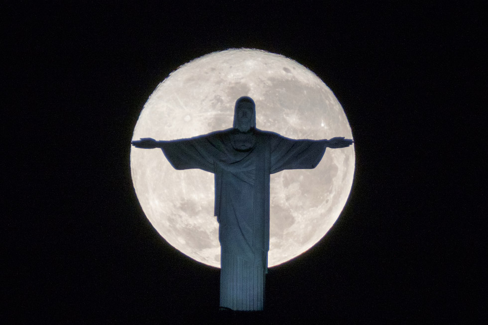 В олимпийском Рио тоже происходило интересное событие — полнолуние. На фоне статуи Христа-Искупителя — это смотрелось эффектно. Рио-де-Жанейро, Бразилия, 19 июля 2016 (Фото Yasuyoshi Chiba).