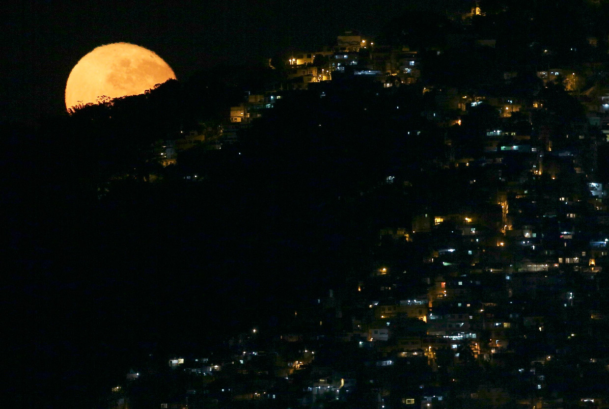 Полная Луна выглядывает в трущобах Рио-де-Жанейро, где проходит Олимпиада, 17 августа 2016. (Фото Bruno Kelly).