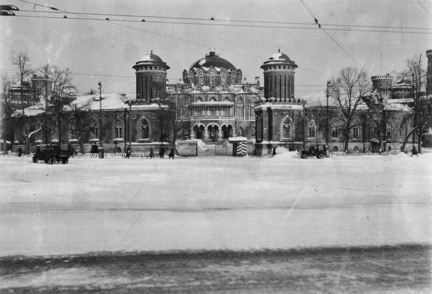 В 1940 году соединения и части тяжелых бомбардировщиков вошли в созданную Дальнебомбардировочную авиацию Главного командования Красной Армии (ДБА ГК). К началу Великой Отечественной войны она включала пять авиакорпусов, три отдельных авиадивизии и один отдельный авиаполк. Штаб Авиации дальнего действия ВС СССР (Петровский путевой дворец). Москва, Ленинградский проспект, дом № 40, фото 1942 года.