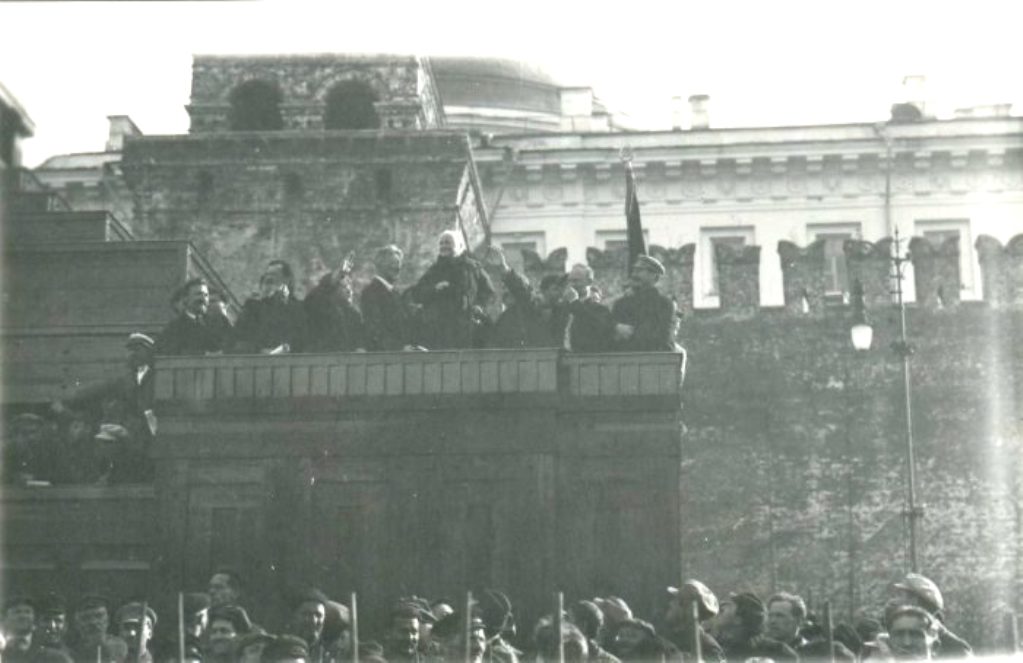 Парад пионеров. В центре Клара Цеткин, с правого края Иосиф Сталин. Красная площадь.Москва, РСФСР, СССР. 1925 год.