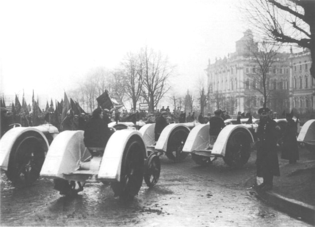 Колонна тракторов направляется на площадь Урицкого (Дворцовая площадь). 1 мая 1929 года. Фото С. Магазинера