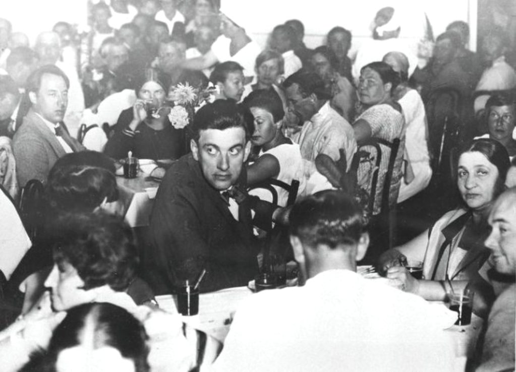 Владимир Маяковский на вечере, посвященном открытию столовой Дома отдыха работников искусств, 1929 год