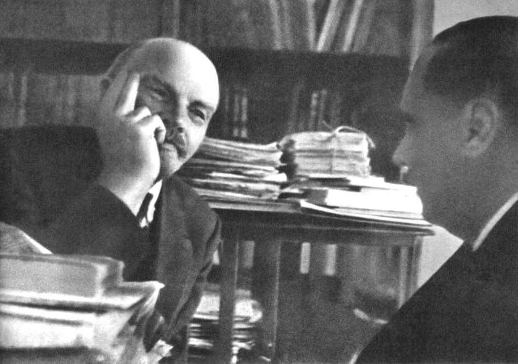 Владимир Ленин в своем кабинете в Кремле беседует с английским писателем Гербертом Уэллсом. Москва, РСФСР. Октябрь 1920 года.