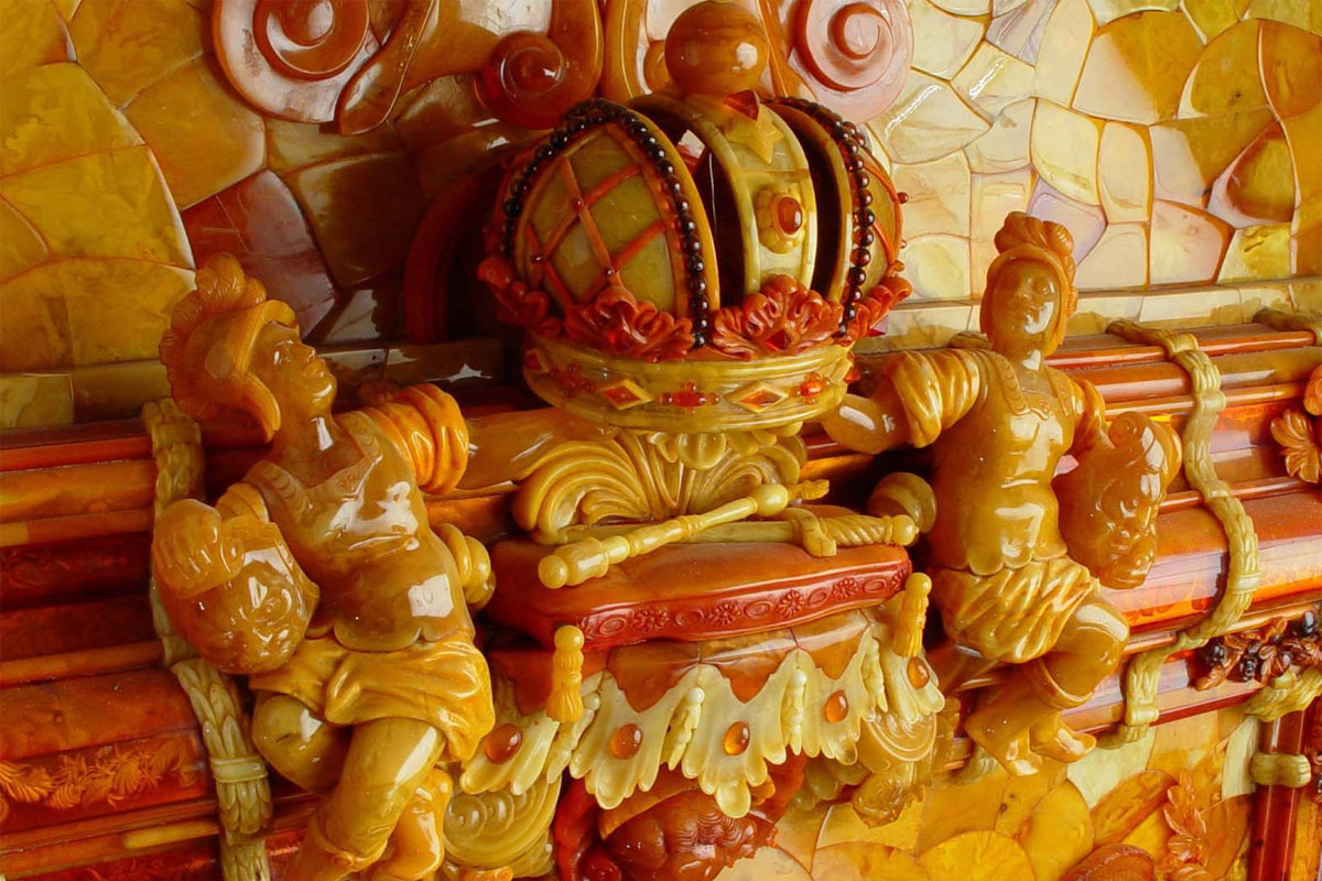 Более 80 разновидностей «солнечного камня», главные запасы которого расположены на Балтике, позволяют ювелирам создавать необыкновенно художественные произведения, способные украсить и монарших особ.