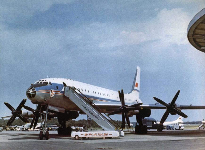 Посадка пассажиров в дальнемагистральный пассажирский самолет ТУ 114, 1965