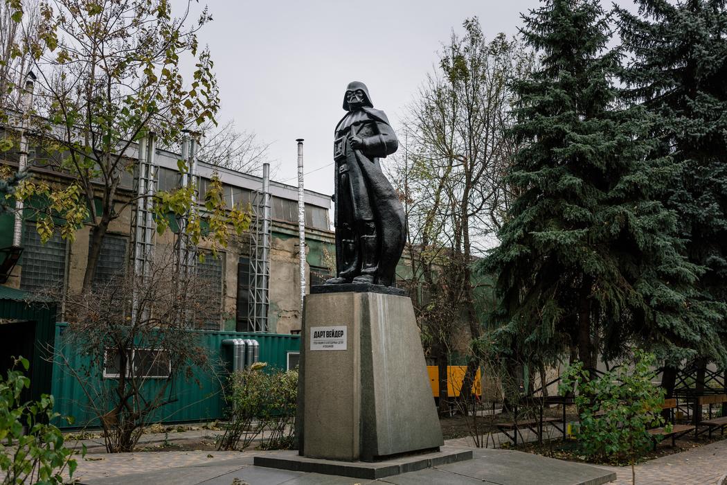 Памятник Дарту Вейдеру из переделанного Владимира Ленина, 12 ноября 2015 года. Памятник находится во дворе на окраине Одессы.