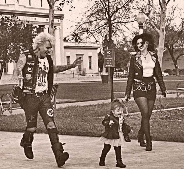 Счастливая семья панков на прогулке.