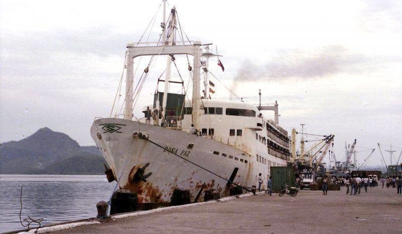 (На заставке - злосчастная "Донья Пас" в порту Таклобан за три года до катастрофы. Как видно, уже тогда ее состояние было далеко не блестящим.)