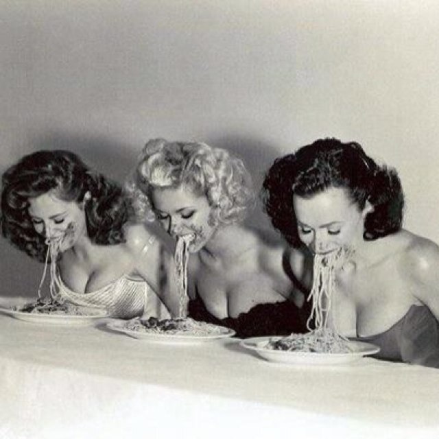 Конкурс поедания спагетти без рук.