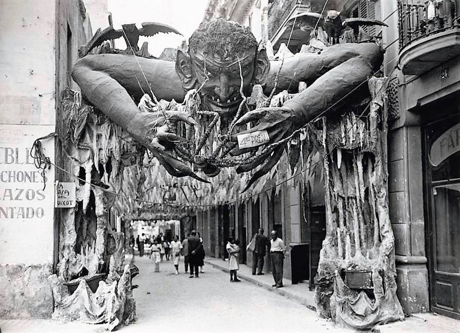 Украшения улиц во время проведения фестиваля Грасия (La Fiesta de Grcia) в Барселоне, 1935 год.