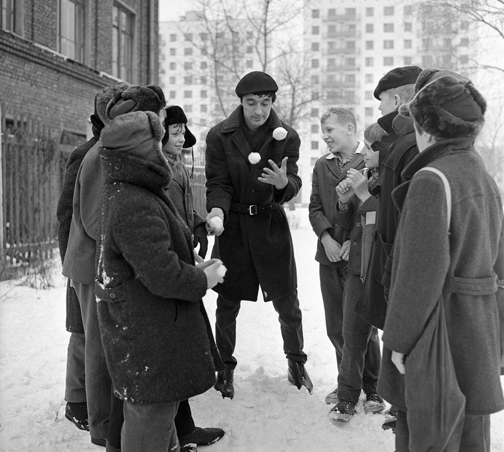 Леонид Енгибаров жонглирует снежками, Москва, 1965 год.