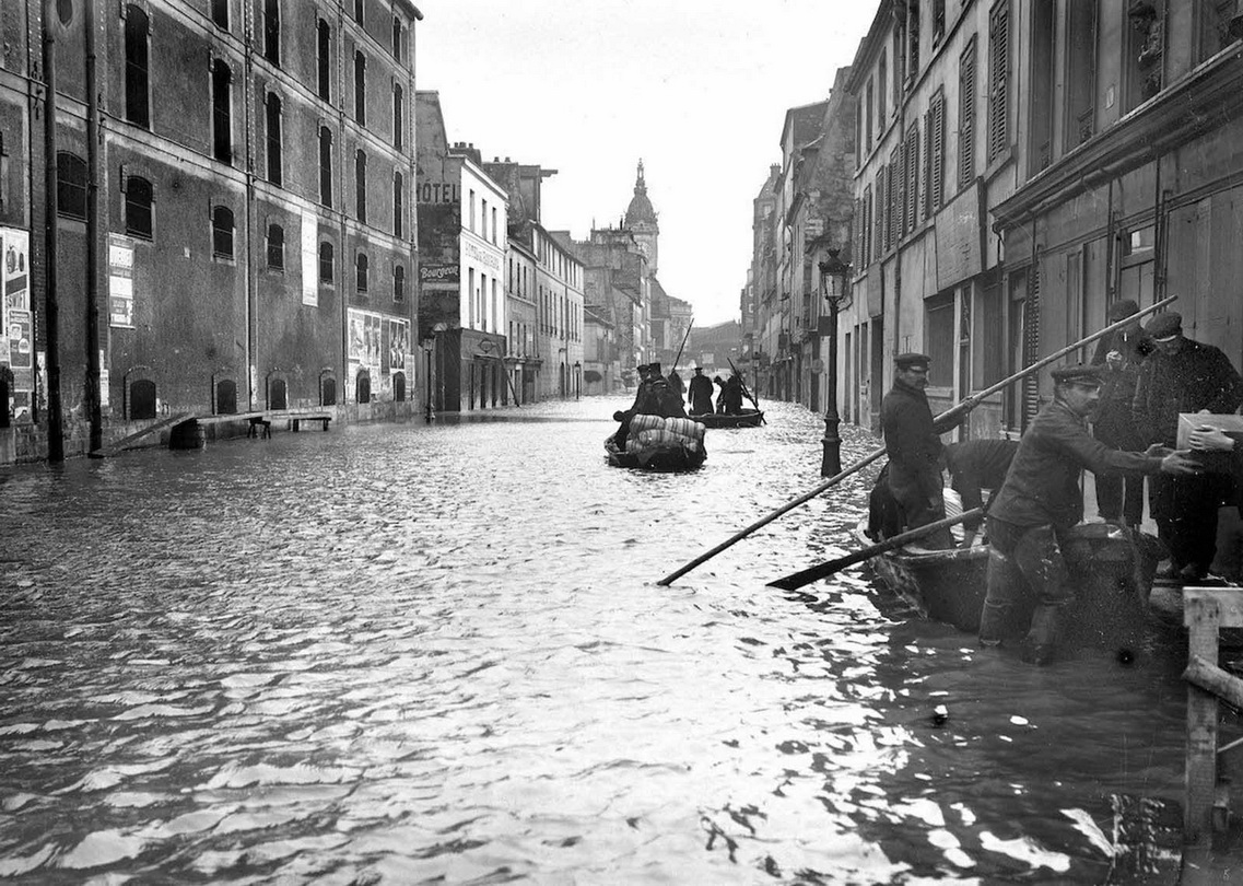 Зимние наводнения – привычное дело в Париже, но 21 января вода в реке стала прибывать гораздо быстрее, чем обычно. В течение следующей недели тысячи парижан покидали свои жилища, так как вода разлилась по всему городу и перекрыла многие коммуникации. Полиция, пожарные и солдаты передвигались по затопленным улицам на лодках и спасали жителей через окна вторых этажей или доставляли им помощь. Беженцев размещали в созданных на скорую руку приютах в церквах, школах и правительственных учреждениях. Хотя вода угрожала перелиться через верх набережных, рабочим удалось удержать Сену, насыпав дамбы на наиболее опасных участках.