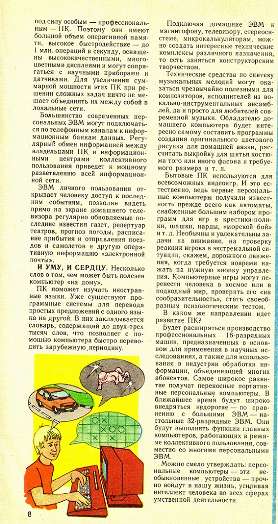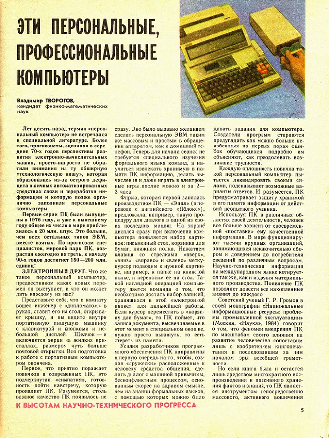 Как известно, персональные компьютеры появились в СССР на самом закате его истории, где-то к середине 1980-х. Однако для продвинутых "технарей" компьютерная эра уже давно началась и передовые советские умы пытались осмыслить, что же можно будет делать с персоналками в ближайшее время, какие перспективы для работы и жизни они открывают.