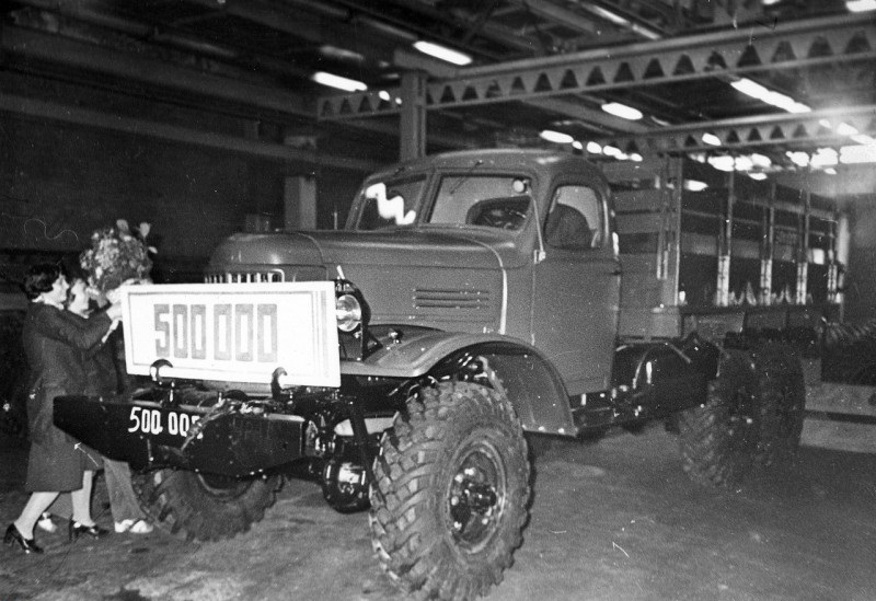 Полумиллионный грузовой автомобиль повышенной проходимости ЗиЛ-157К покидает сборочный конвейер завода имени Лихачева; Москва 22-е марта 1978-го года.